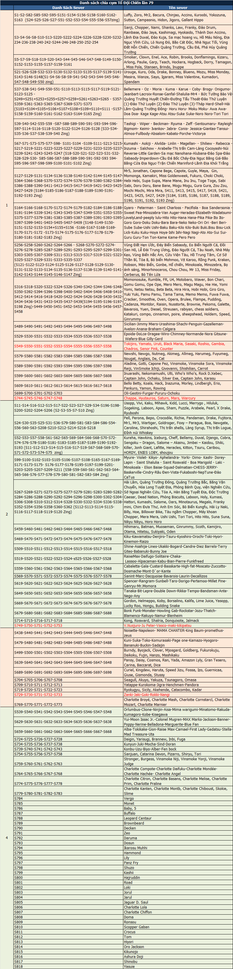 Danh Sách Chia Cụm Tổ Đội Chiến Lần Thứ 79