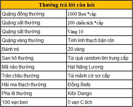 - Tích lũy 50 lần trả lời đúng, có thể nhận được phần thưởng “Băng hải tặc Arlong”, Túi Random Haki cao cấp *1