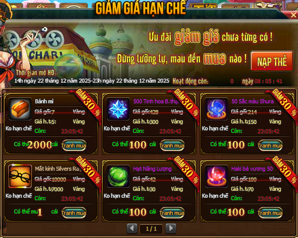 - Trong thời gian HĐ, người chơi thông qua giao diện hoạt động, tiến hành mua những vật phẩm giảm giá trong game;