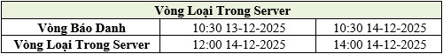 Vòng Loại Trong Server: 12:00 14-12-2025 đến 14:00 14-12-2025