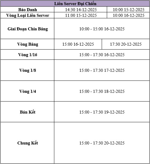Vòng Loại Liên Server: 11:00 15-12-2025 đến 10:00 16-12-2025