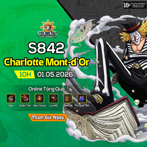 Máy chủ mới S842.Charlotte Mont-d'Or sẽ chính thức khai mở vào 10h ngày 01/05/2026. Hãy cùng tham gia vào hành trình bất tận, không điểm dừng và chính các thuyền trưởng sẽ là người lãnh đạo cả nhóm vươn tới mục tiêu duy nhất “Tìm kiếm One Piece và trở thành Vua Hải Tặc”