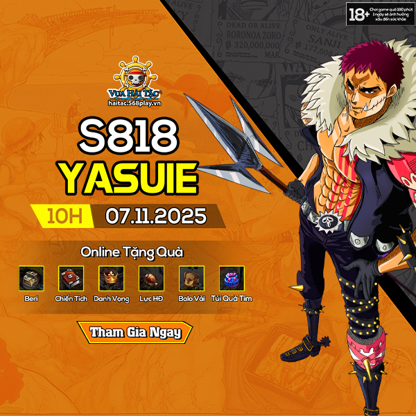 Chúc thuyền trưởng có những giờ phút trải nghiệm tuyệt vời trên con đường khám phá đại hải trình trong Vua Hải Tặc và hãy cùng theo dõi chuỗi sự kiện hấp dẫn dành riêng cho máy chủ S818.Yasuie sau TẠI ĐÂY