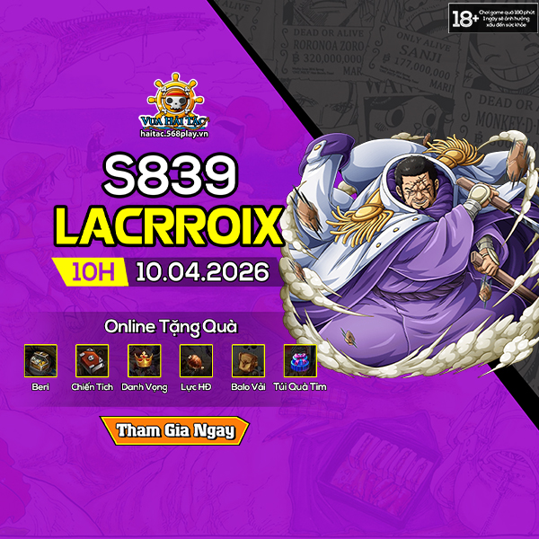 Chúc thuyền trưởng có những giờ phút trải nghiệm tuyệt vời trên con đường khám phá đại hải trình trong Vua Hải Tặc và hãy cùng theo dõi chuỗi sự kiện hấp dẫn dành riêng cho máy chủ S839.Lacrroix sau TẠI ĐÂY