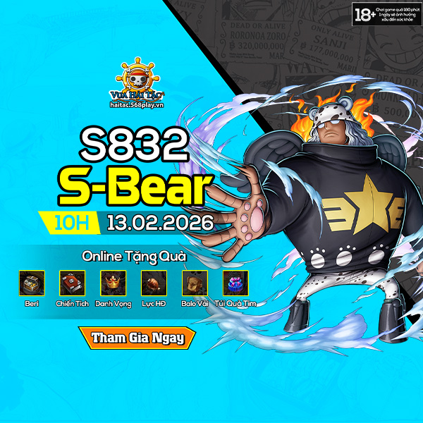 Máy chủ mới S832.S-Bear sẽ chính thức khai mở vào 10h ngày 13/02/2026. Hãy cùng tham gia vào hành trình bất tận, không điểm dừng và chính các thuyền trưởng sẽ là người lãnh đạo cả nhóm vươn tới mục tiêu duy nhất “Tìm kiếm One Piece và trở thành Vua Hải Tặc”
