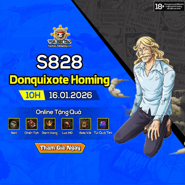 Chúc thuyền trưởng có những giờ phút trải nghiệm tuyệt vời trên con đường khám phá đại hải trình trong Vua Hải Tặc và hãy cùng theo dõi chuỗi sự kiện hấp dẫn dành riêng cho máy chủ S828.Donquixote Homing sau TẠI ĐÂY