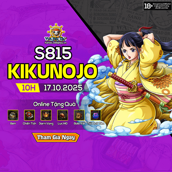 Chúc thuyền trưởng có những giờ phút trải nghiệm tuyệt vời trên con đường khám phá đại hải trình trong Vua Hải Tặc và hãy cùng theo dõi chuỗi sự kiện hấp dẫn dành riêng cho máy chủ S815.Kikunojo sau TẠI ĐÂY