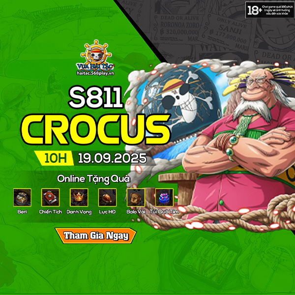 Chúc thuyền trưởng có những giờ phút trải nghiệm tuyệt vời trên con đường khám phá đại hải trình trong Vua Hải Tặc và hãy cùng theo dõi chuỗi sự kiện hấp dẫn dành riêng cho máy chủ S811.Crocus sau TẠI ĐÂY