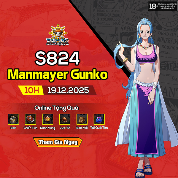 Máy chủ mới S824.Manmayer Gunko sẽ chính thức khai mở vào 10h ngày 19/12/2025. Hãy cùng tham gia vào hành trình bất tận, không điểm dừng và chính các thuyền trưởng sẽ là người lãnh đạo cả nhóm vươn tới mục tiêu duy nhất “Tìm kiếm One Piece và trở thành Vua Hải Tặc”