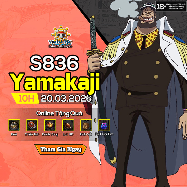 Máy chủ mới S836.Yamakaji sẽ chính thức khai mở vào 10h ngày 20/03/2026. Hãy cùng tham gia vào hành trình bất tận, không điểm dừng và chính các thuyền trưởng sẽ là người lãnh đạo cả nhóm vươn tới mục tiêu duy nhất “Tìm kiếm One Piece và trở thành Vua Hải Tặc”