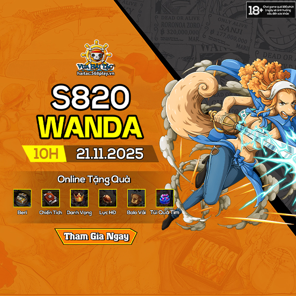 Máy chủ mới S820.Wanda sẽ chính thức khai mở vào 10h ngày 21/11/2025. Hãy cùng tham gia vào hành trình bất tận, không điểm dừng và chính các thuyền trưởng sẽ là người lãnh đạo cả nhóm vươn tới mục tiêu duy nhất “Tìm kiếm One Piece và trở thành Vua Hải Tặc”