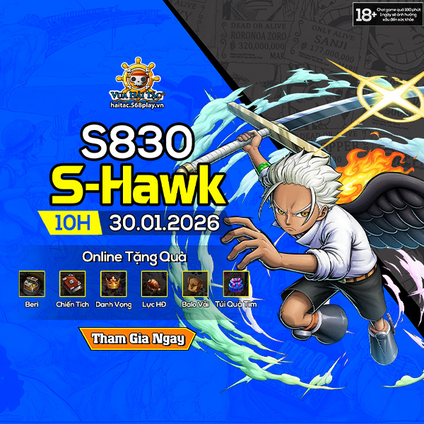 Máy chủ mới S830.S-Hawk sẽ chính thức khai mở vào 10h ngày 30/01/2026. Hãy cùng tham gia vào hành trình bất tận, không điểm dừng và chính các thuyền trưởng sẽ là người lãnh đạo cả nhóm vươn tới mục tiêu duy nhất “Tìm kiếm One Piece và trở thành Vua Hải Tặc”