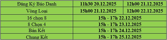 - Phân chia ngẫu nhiên đối thủ, mỗi trận 1 ván. Mỗi ván cách nhau 20 phút.