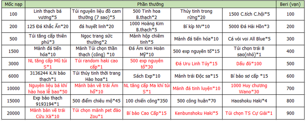 - Trong thời gian HĐ, người chơi Đạt các mức tích lũy có thể nhận code.