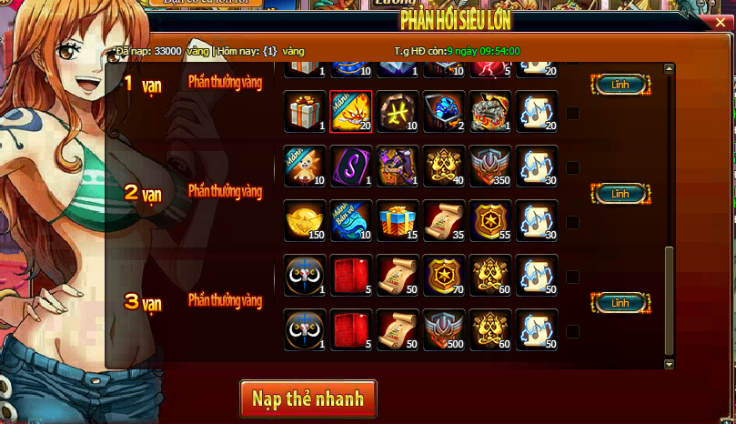 - Trong thời gian HĐ, vàng người chơi nạp trong thời gian HĐ đều sẽ được tích lũy, đạt đến mức vàng yêu cầu, là có thể nhấn vào nút nhận thưởng để nhận thưởng;