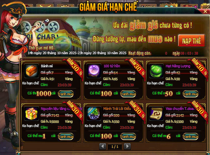 1. Trong thời gian HĐ, người chơi thông qua giao diện hoạt động, tiến hành mua những vật phẩm giảm giá trong game;