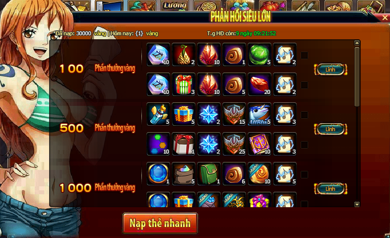 - Trong thời gian HĐ, vàng người chơi nạp trong thời gian HĐ đều sẽ được tích lũy, đạt đến mức vàng yêu cầu, là có thể nhấn vào nút nhận thưởng để nhận thưởng;