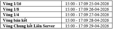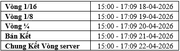 Giai đoạn vòng loại: 15:00 24-04-2026 – 11:09 25-04-2026